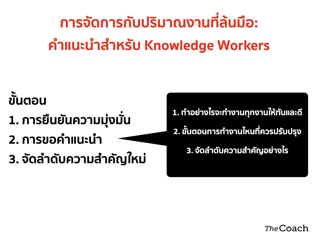 แนวทางการหารือกับหัวหน้า เกี่ยวกับปัญหางานล้นมือนั้นควรปฏิบัติด้วยวิธีการดังนี้: