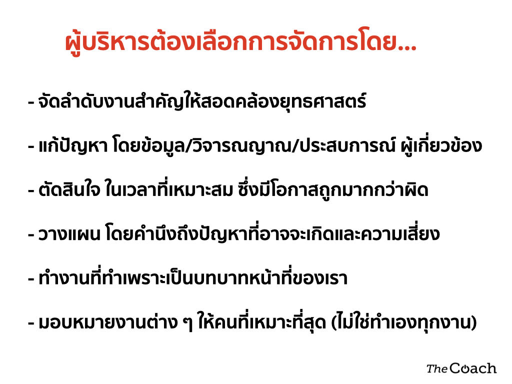 หน้าที่ของผู้บริหาร คือบริหารผลงานของทีมงาน
