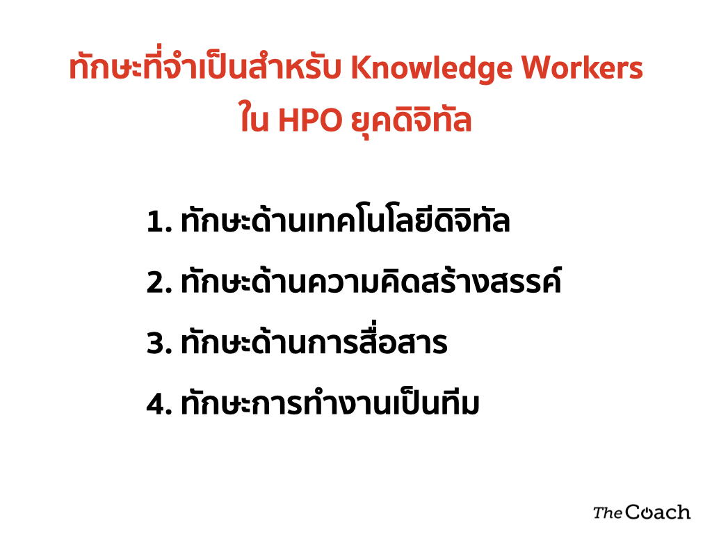 ทักษะที่จำเป็นของ Knowledge Workers ใน HPO ก็เปลี่ยนแปลงไปเช่นกัน