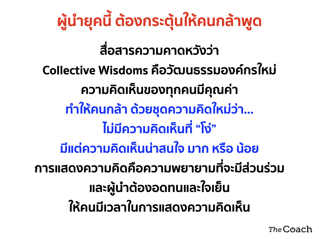 ต้องสามารถดึงให้ทีมงานแสดงความคิดเห็นให้มากขึ้น