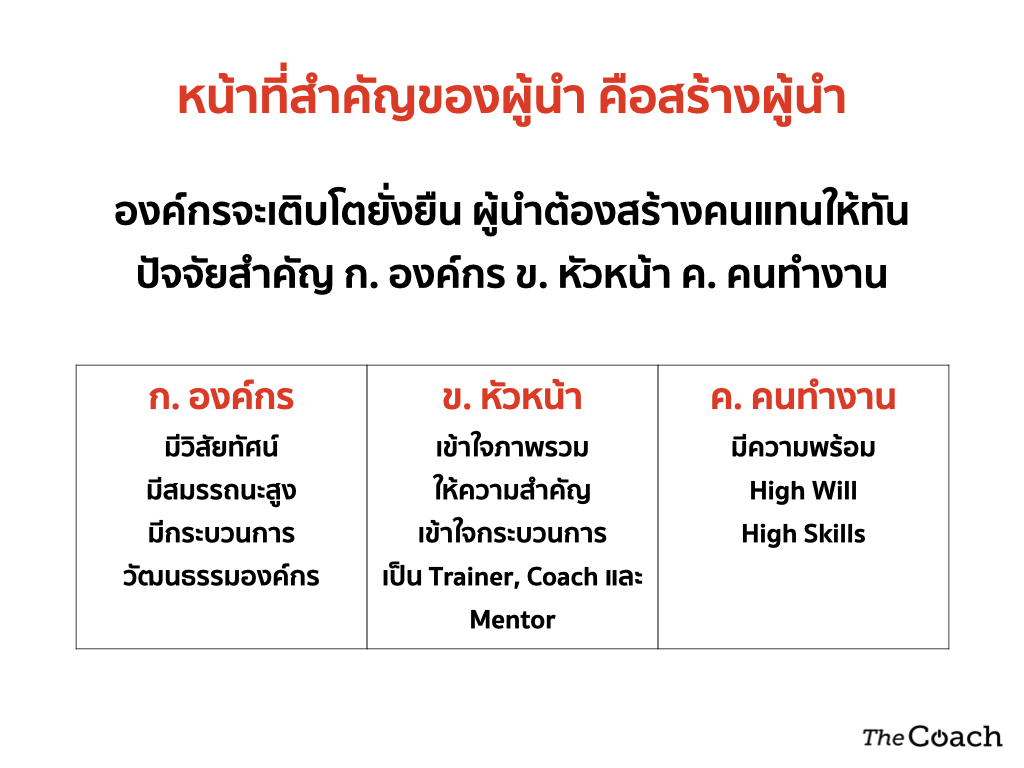 องค์กรจะเติบโตอย่างยั่งยืน ผู้นำต้องสร้างคนมาแทนให้ทัน
