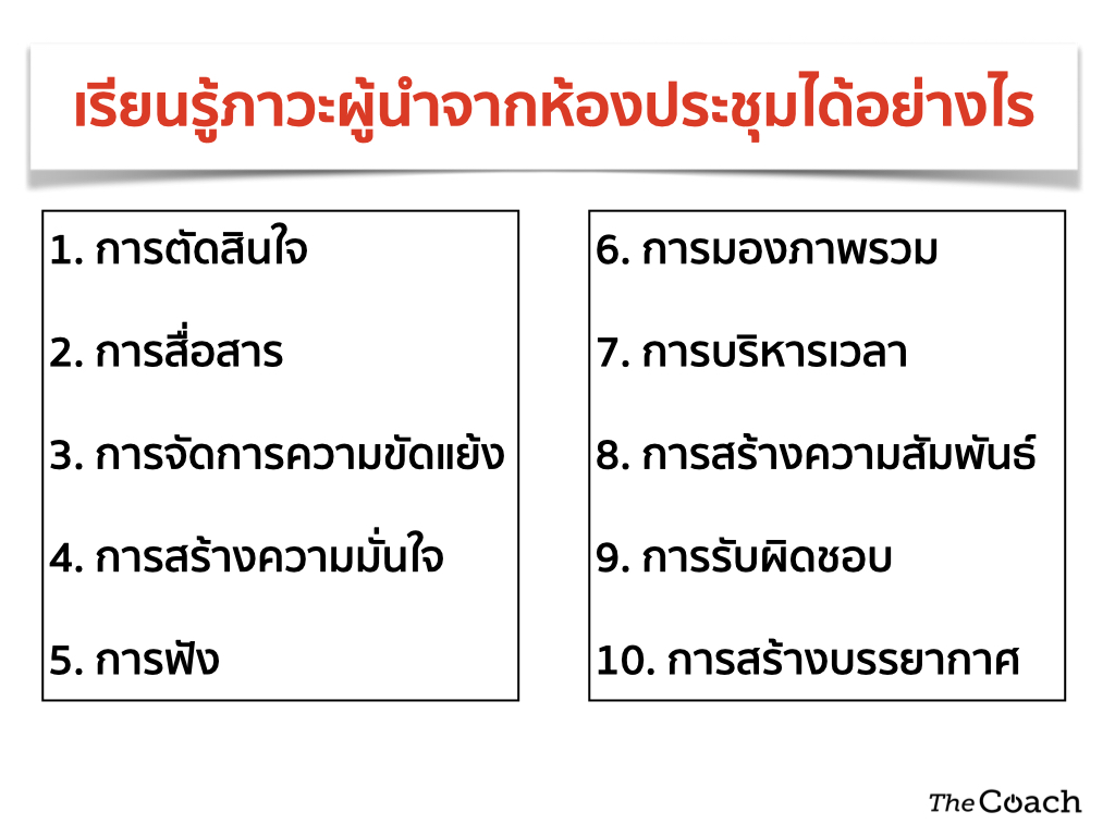 คุณสามารถเรียนรู้ภาวะผู้นำจากห้องประชุมได้ดังนี้:
