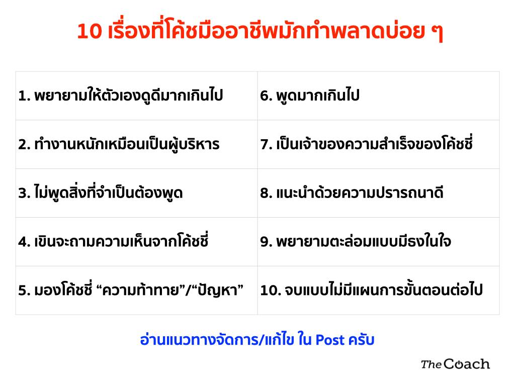ผมมีโอกาสดู YouTube หัวข้อ “Top 10 Coaching Mistakes”