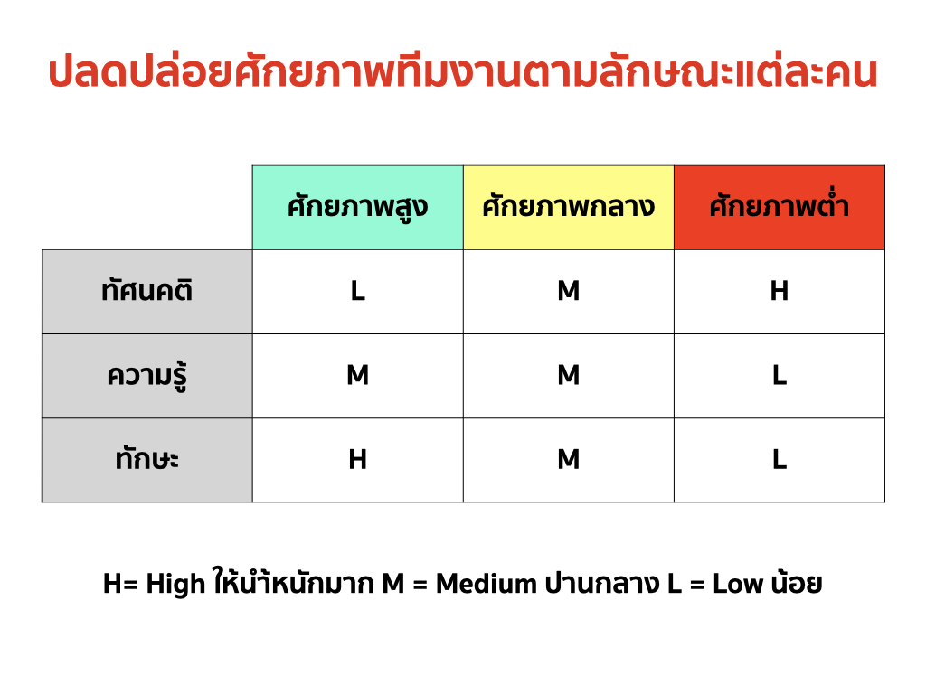 – ทัศนคติ ส่วนใหญ่จะมี Fixed Mindset / ไม่เชื่อมั่นในตัวเอง / ไม่อยากออกจาก Comfort Zone หัวหน้าต้องหาทางจัดการกับทัศนคติของแต่ละบุคคลก่อน