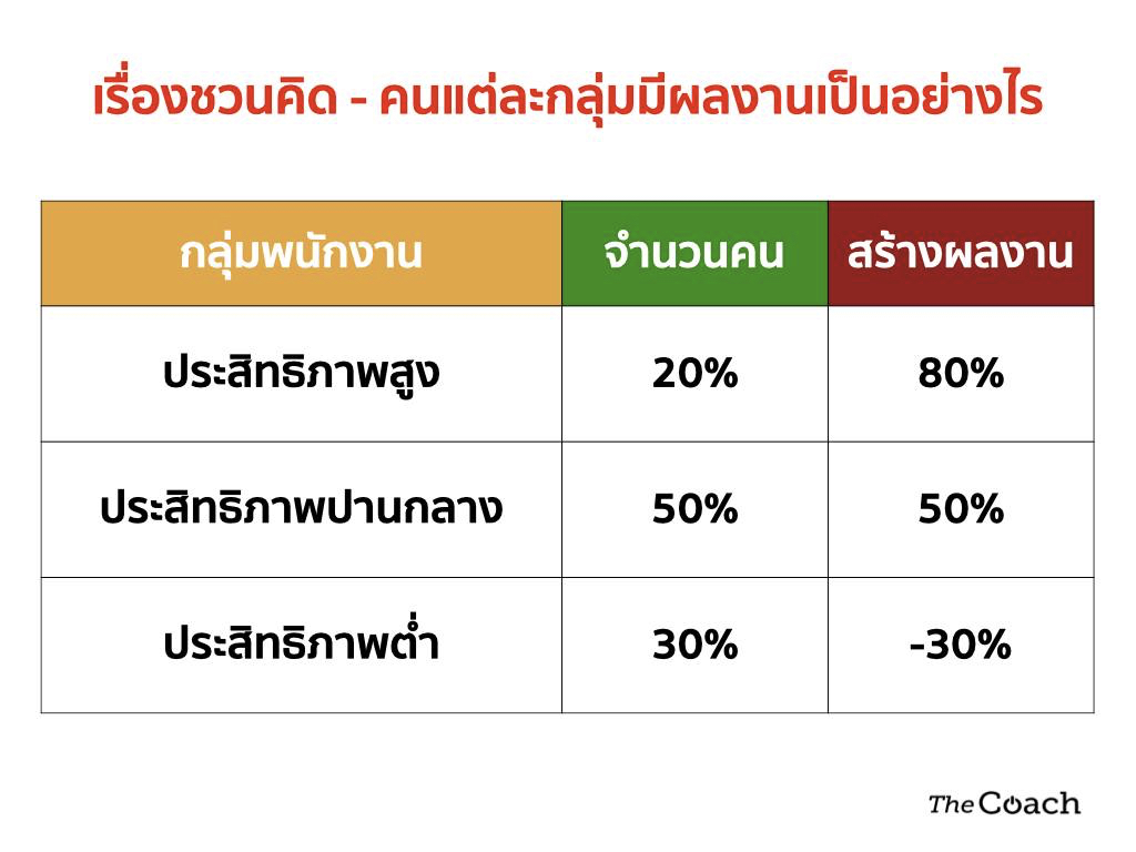 กลุ่มที่มีประสิทธิภาพสูง สร้างผลงาน 80%