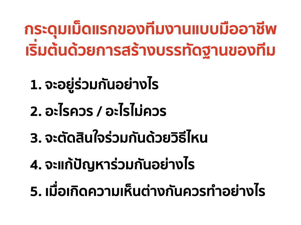 โดยการกำหนดเป็น Team Norms หรือบรรทัดฐานในการทำงานร่วมกัน