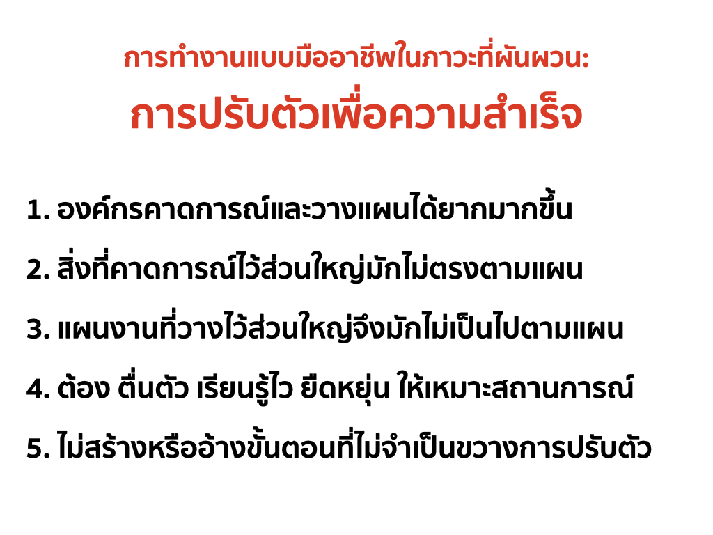 4. ต้อง ตื่นตัว เรียนรู้ไว ยืดหยุ่น ให้เหมาะสถานการณ์