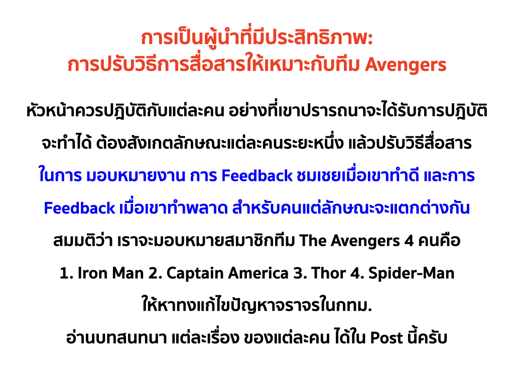 การเป็นผู้นำที่มีประสิทธิภาพ: การปรับวิธีการสื่อสารให้เหมาะกับทีม Avengers