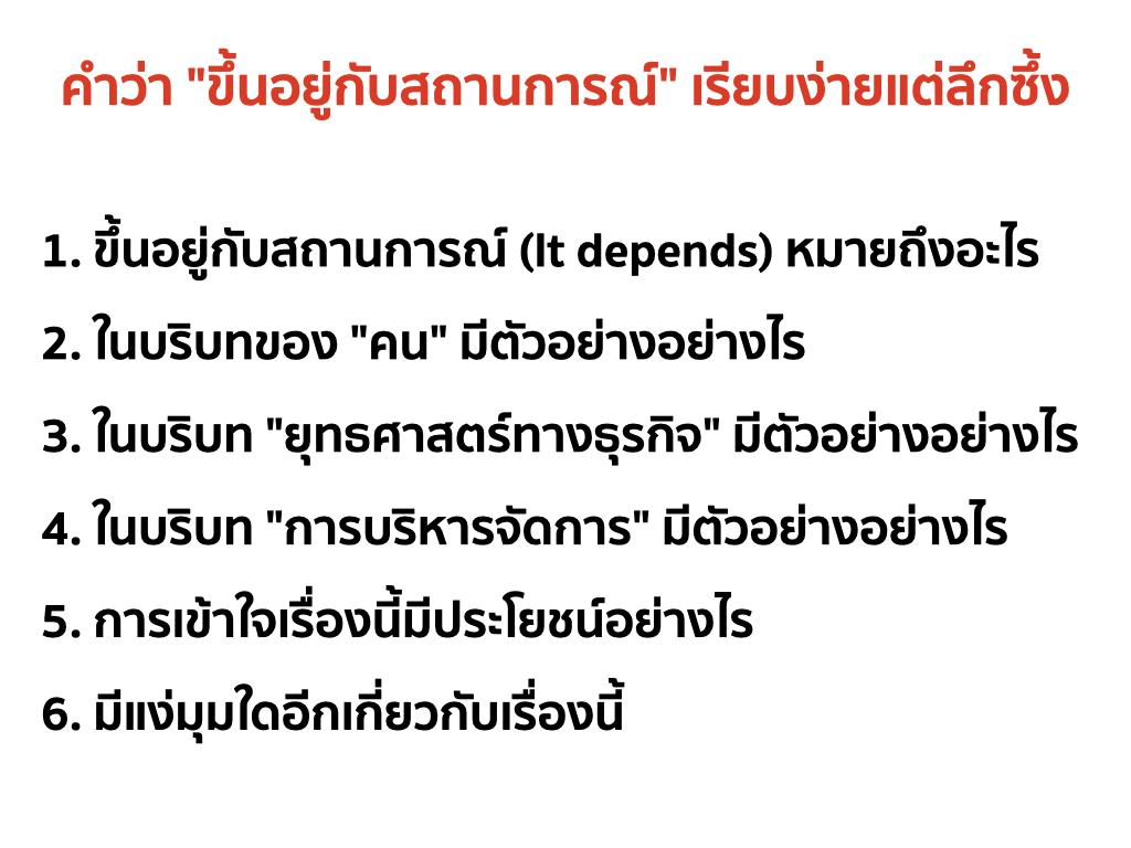 1. “ขึ้นอยู่กับสถานการณ์” หรือ “It depends” หมายถึงอะไร