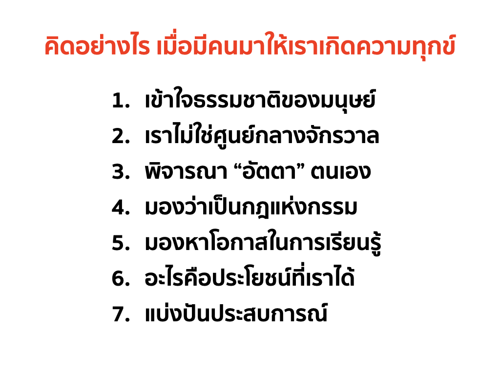 มองหาด้านบวกจากสถานการณ์ เช่น การถูกตำหนิอาจช่วยให้เราพัฒนาตนเองให้ดีขึ้น