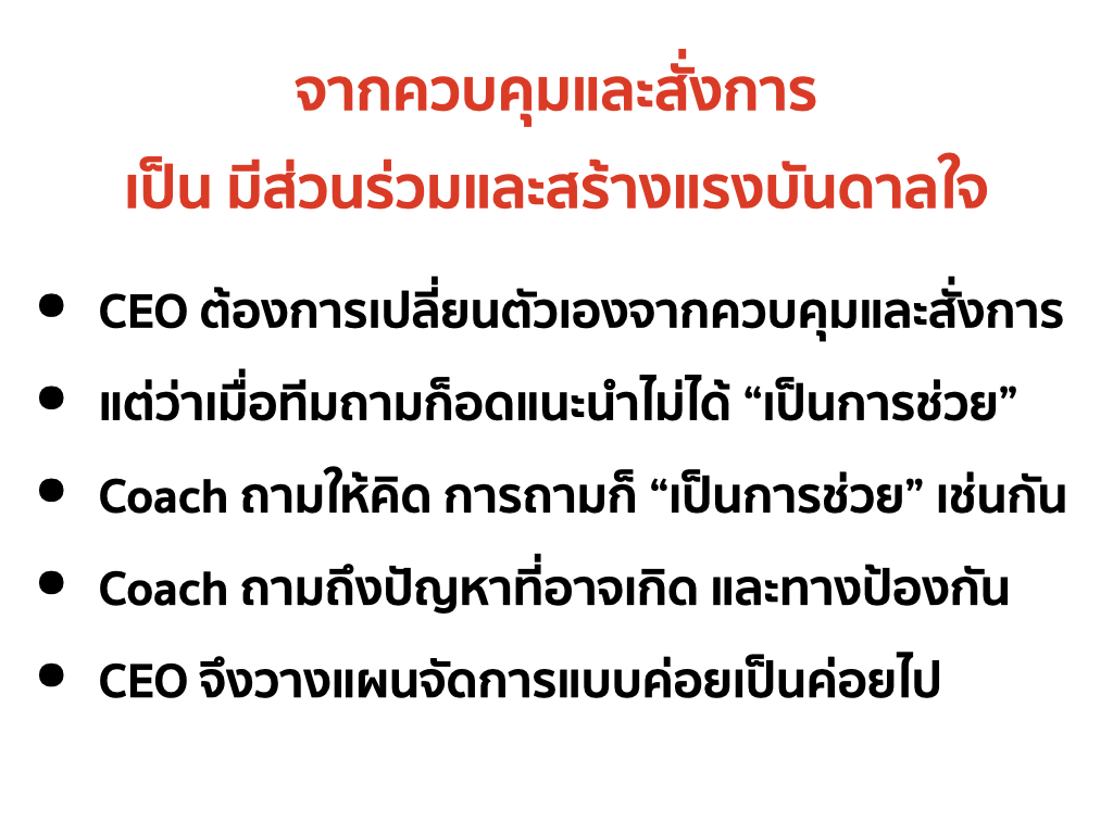 “โค้ชครับ ผมต้องคิดใหม่ว่า การตั้งคำถามให้เขาคิดเป็นการช่วยเหลือพวกเขาอีกรูปแบบหนึ่งครับ