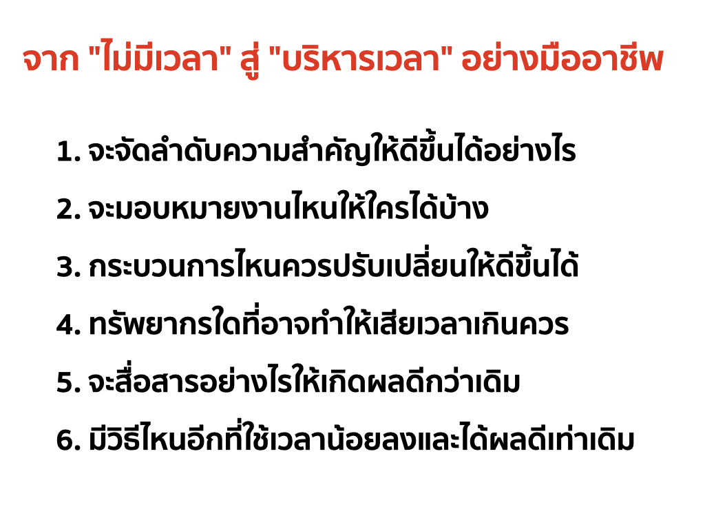 สาเหตุหลักของปัญหานี้อาจเกิดจากการบริหารจัดการเวลาที่ไม่มีประสิทธิภาพ