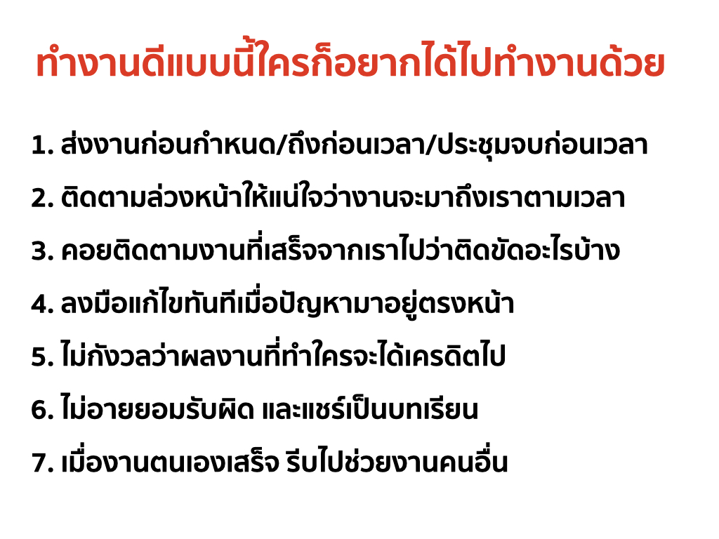 7. เมื่องานตนเองเสร็จรีบไปช่วยงานคนอื่น