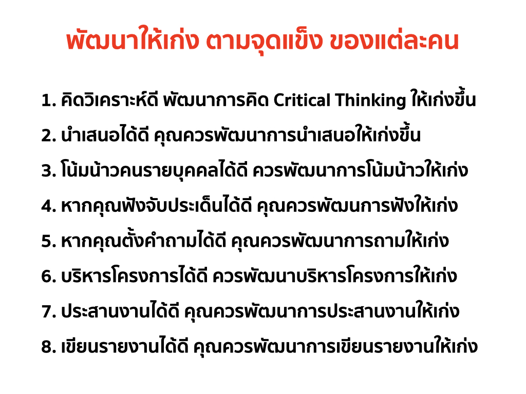 ทักษะที่คุณควรพัฒนาให้เก่ง คุณควรพัฒนาตามความถนัด/จุดแข็ง ของแต่ละคน