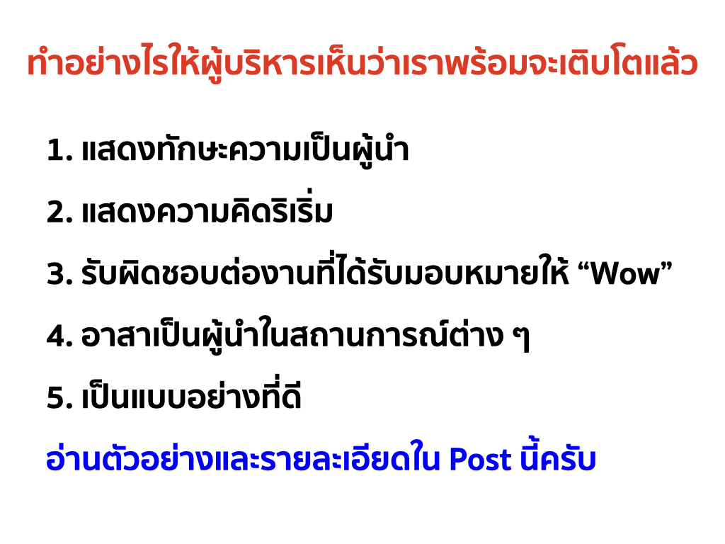 หากคุณต้องการก้าวหน้าเร็ว ต้องแสดงศักยภาพให้ฝ่ายบริหารเห็น