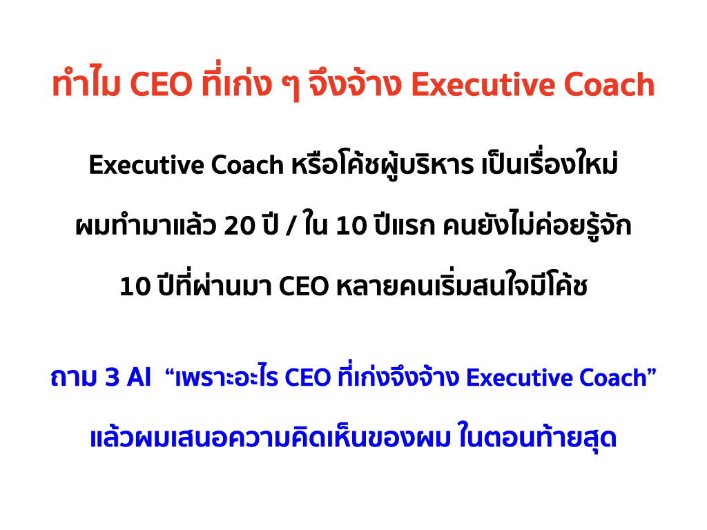ผมลองถาม AI 3 รายดูว่า “เพราะอะไร CEO ที่เก่ง ๆ จึงจ้าง Executive Coach”