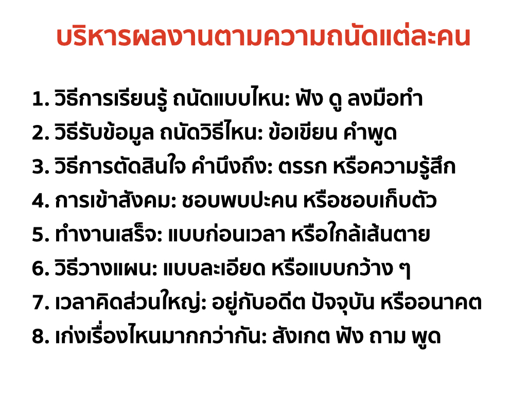 - วิธีการเรียนรู้: ถนัดแบบไหน ฟัง ดู ลงมือทำ