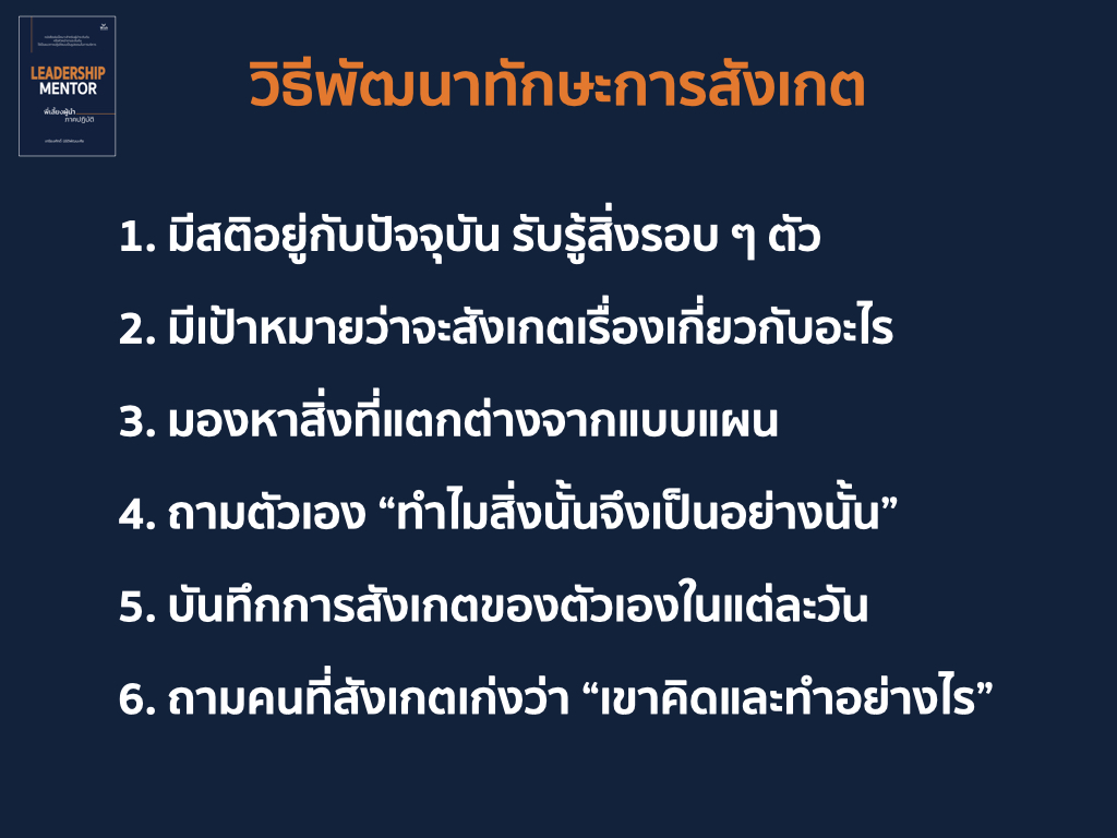 ทักษะที่เป็นพื้นฐานสำคัญสำหรับภาวะผู้นำคือ ทักษะ “การสังเกต”