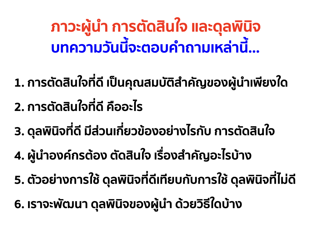 1. การตัดสินใจที่ดีเป็นคุณสมบัติสำคัญของผู้นำเพียงใด