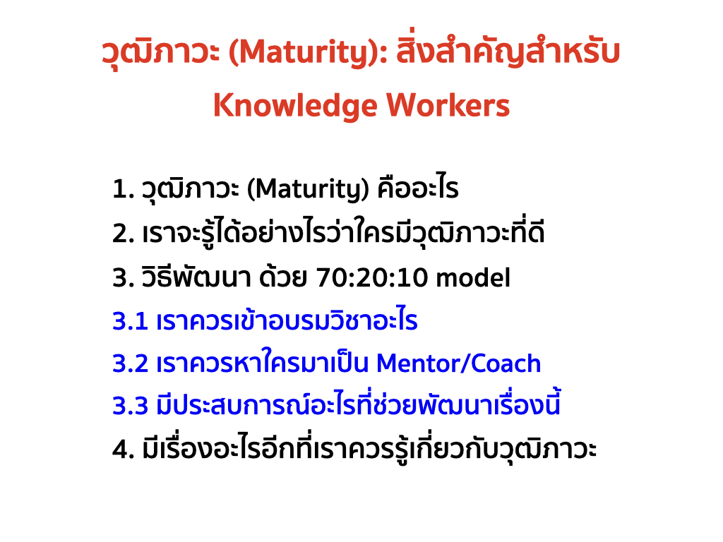 3. มีวิธีพัฒนาวุฒิภาวะอย่างไรบ้างด้วย 70:20:10 model for learning and development