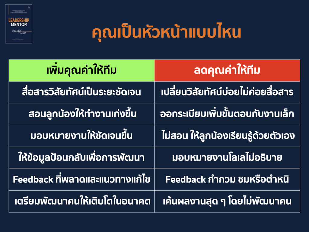 1. หัวหน้าที่เพิ่มคุณค่าให้ลูกทีม