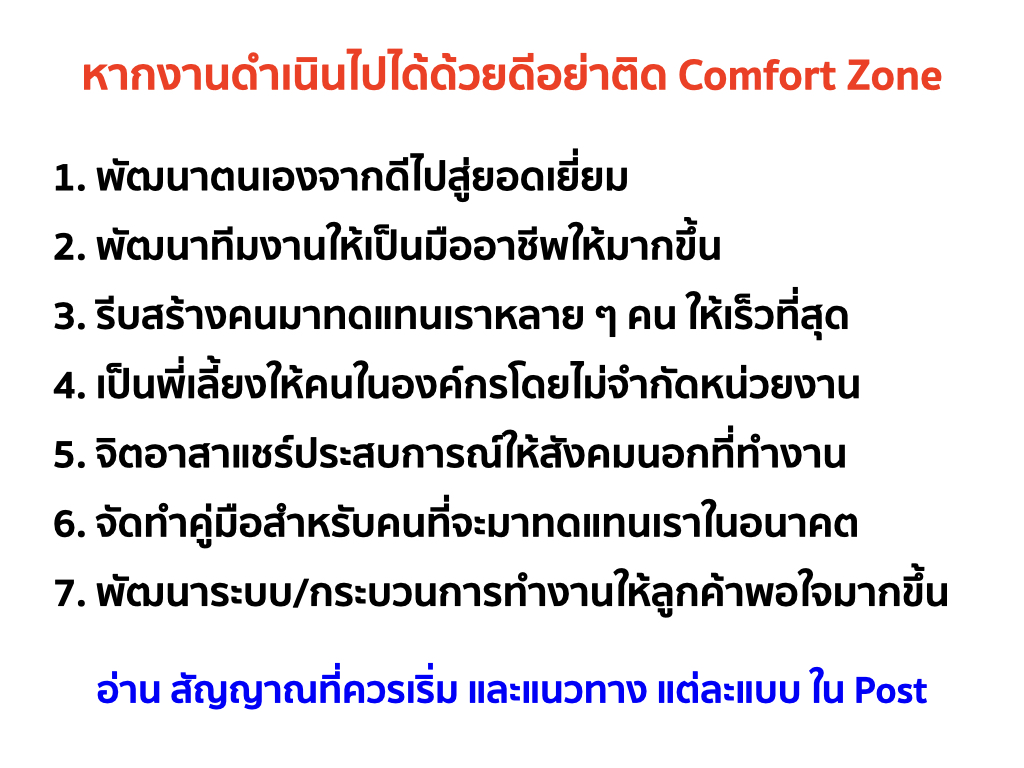 เมื่อเราประสบความสำเร็จในงานและทุกอย่างดูเหมือนจะราบรื่น นั่นคือช่วงเวลาที่เราต้องระมัดระวังไม่ให้ติดอยู่ใน “Comfort Zone” ความมั่นคงในสถานการณ์ที่เราคุ้นเคยอาจทำให้เราเสียโอกาสในการพัฒนาและเติบโตในระยะยาว ต่อไปนี้คือ 7 แนวทางที่จะช่วยให้คุณออกจาก Comfort Zone พร้อมสัญญาณที่บอกว่าคุณควรเริ่มลงมือทำ