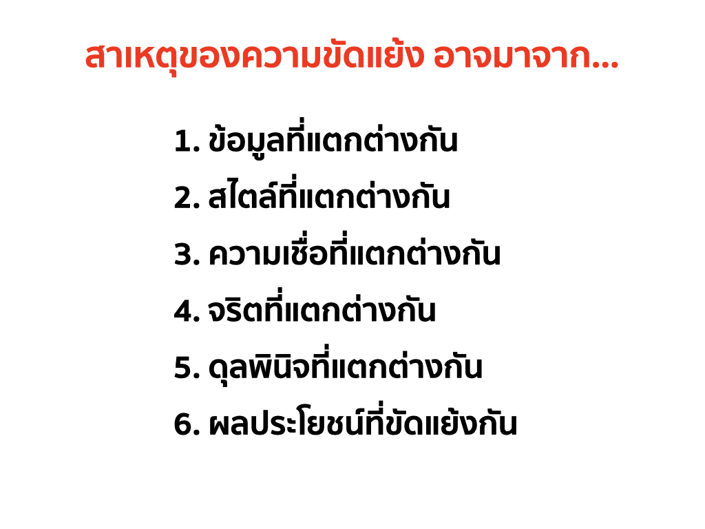 ลองประเมินดูว่า สาเหตุที่เรากำลังขัดแย้งกันนั้น มาจากเรื่องใด