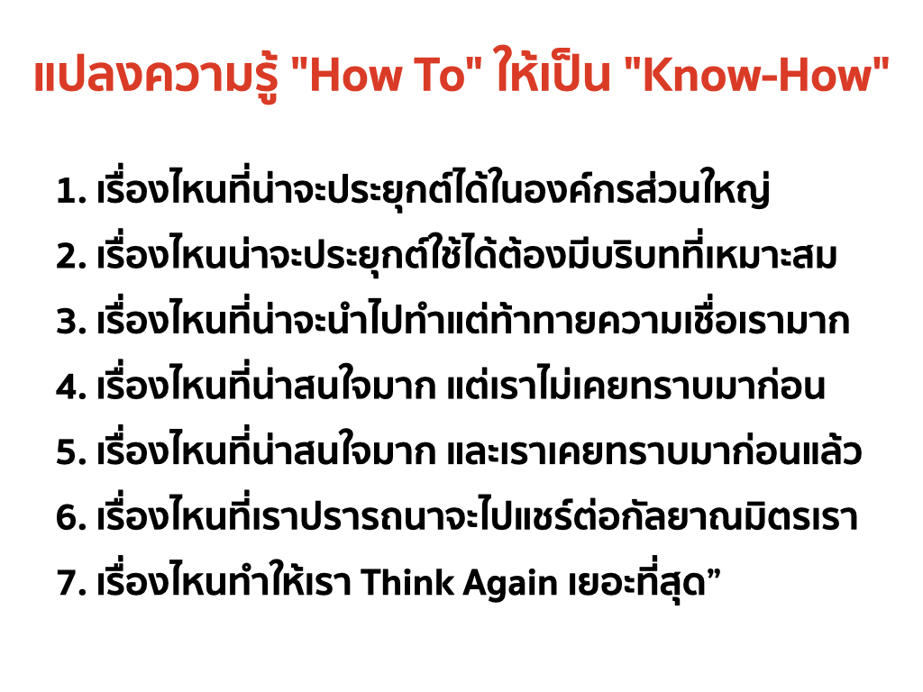 ขอเสนอ 7 คำถามชวนคิด ที่จะช่วย “How To” ให้กลายเป็น “Know-How” ที่นำไปประยุกต์ใช้ได้จริง