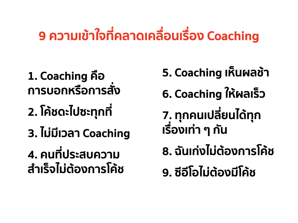 ผมเป็นโค้ชผู้บริหารรายบุคคล หรือ Executive Coach มากว่า 20 ปี มีความเข้าใจที่คลาดเคลื่อนเรื่อง Coaching หลาย ๆ เรื่อง ซึ่งผมอยากแชร์มุมมองของผมดังนี้ครับ