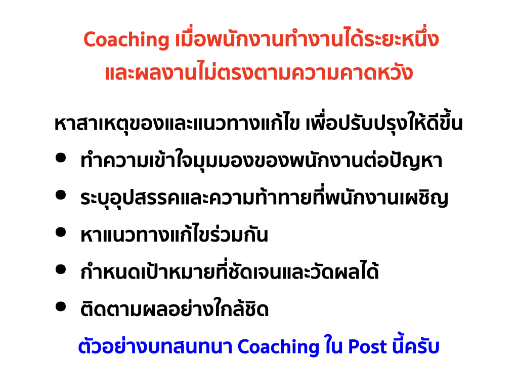 นี่คือบทสนทนา Coaching เมื่อเมื่อพนักงานทำงานได้ระยะหนึ่ง และผลงานไม่ตรงตามความคาดหวัง