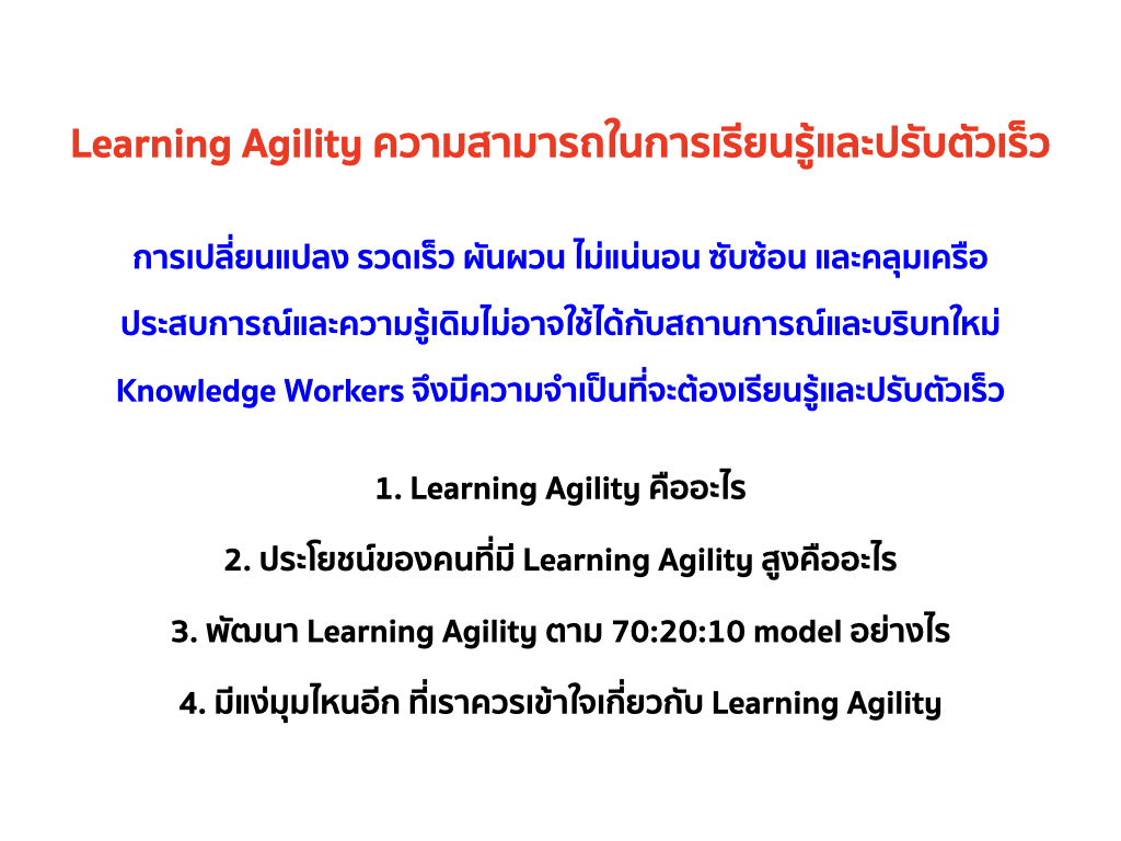 – การเรียนผ่านคอร์สออนไลน์หรือสัมมนาที่เน้นการพัฒนา Learning Agility