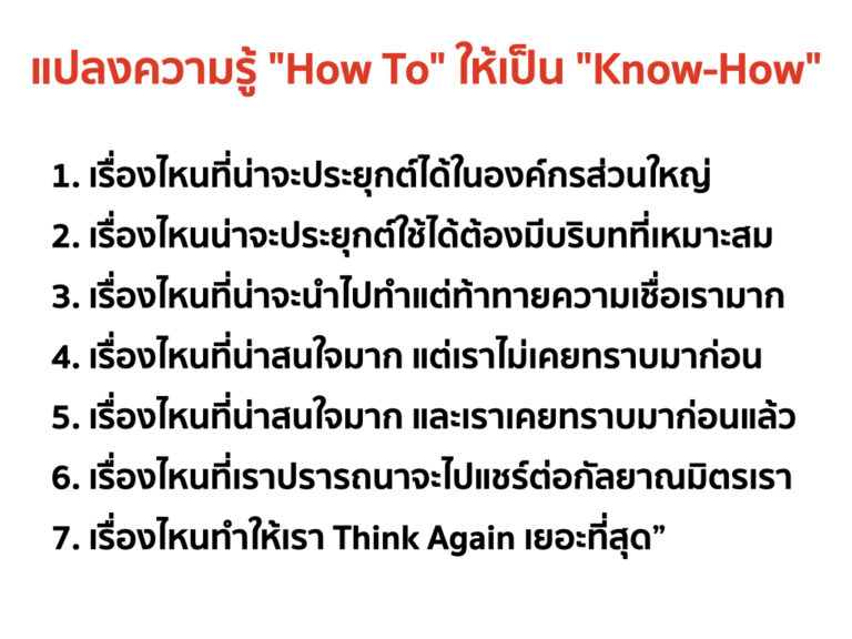 แปลงความรู้ “How To” ให้เป็น “Know-How”