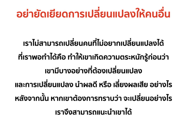 อย่ายัดเยียดการเปลี่ยนแปลงให้คนอื่น
