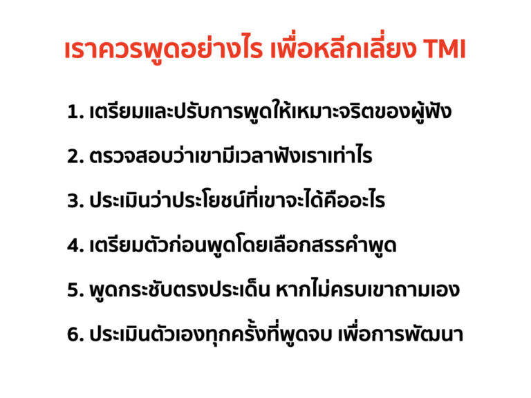 จัดการ TMI ด้วยการพูดให้เข้าใจง่ายในเวลาอันสั้น