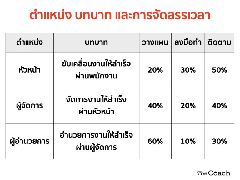2.1 ตำแหน่ง บทบาท และการจัดสรรเวลา